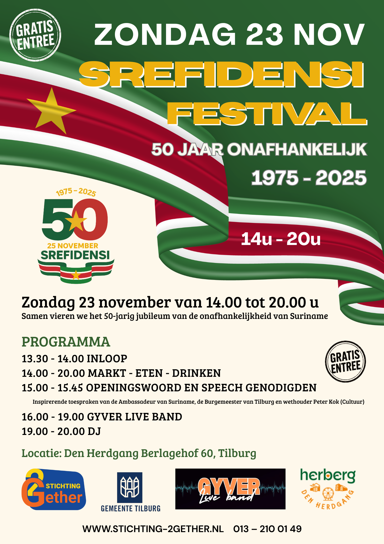 De activiteit is gratis en iedereen is welkom, maar graag wil even aanmelden als u komt helpen: Bel 013 – 210 01 49 of loop even binnen en vraag naar Jerry of Stichting 2Gether.