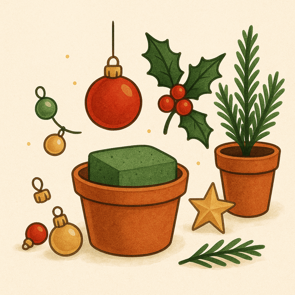 🕯️ Spullen voor het maken van een kerststukje zijn aanwezig.