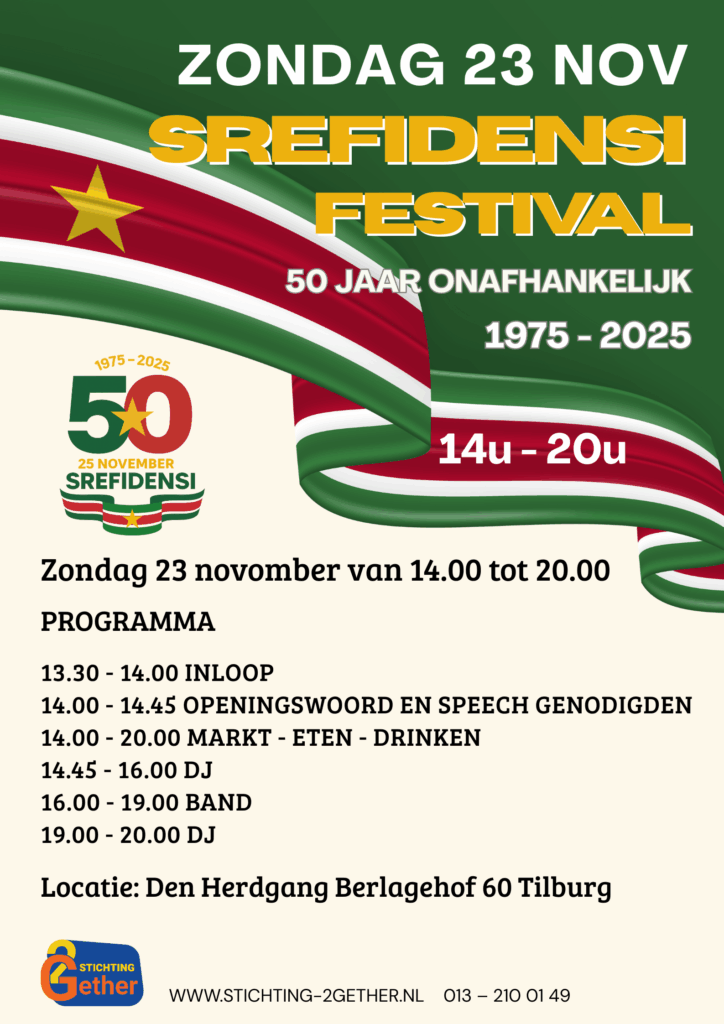 De activiteit is gratis en iedereen is welkom, maar graag wil even aanmelden als u komt helpen: Bel 013 – 210 01 49 of loop even binnen en vraag naar Jerry of Stichting 2Gether.